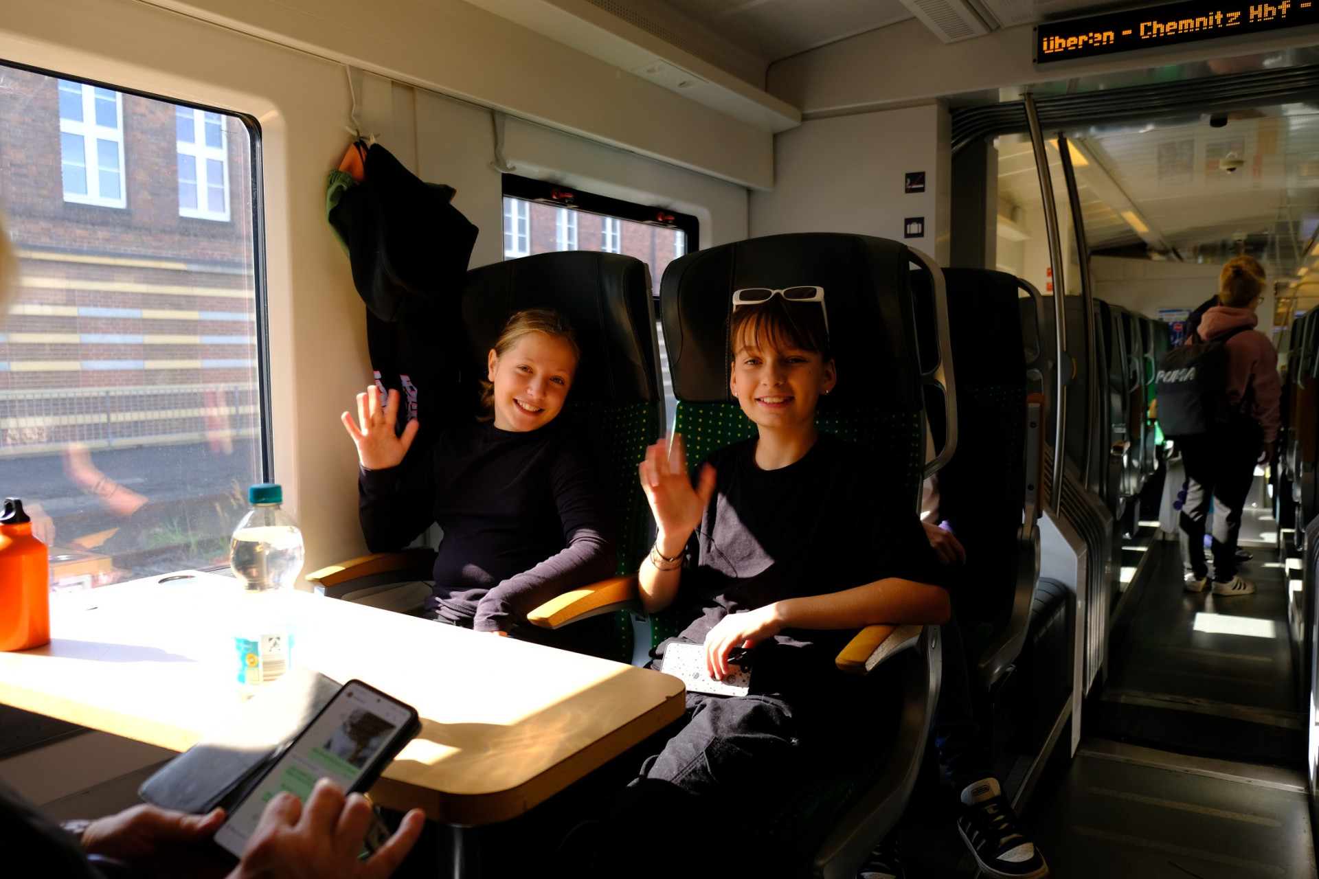 Wir sagen Hallo aus dem Zug!