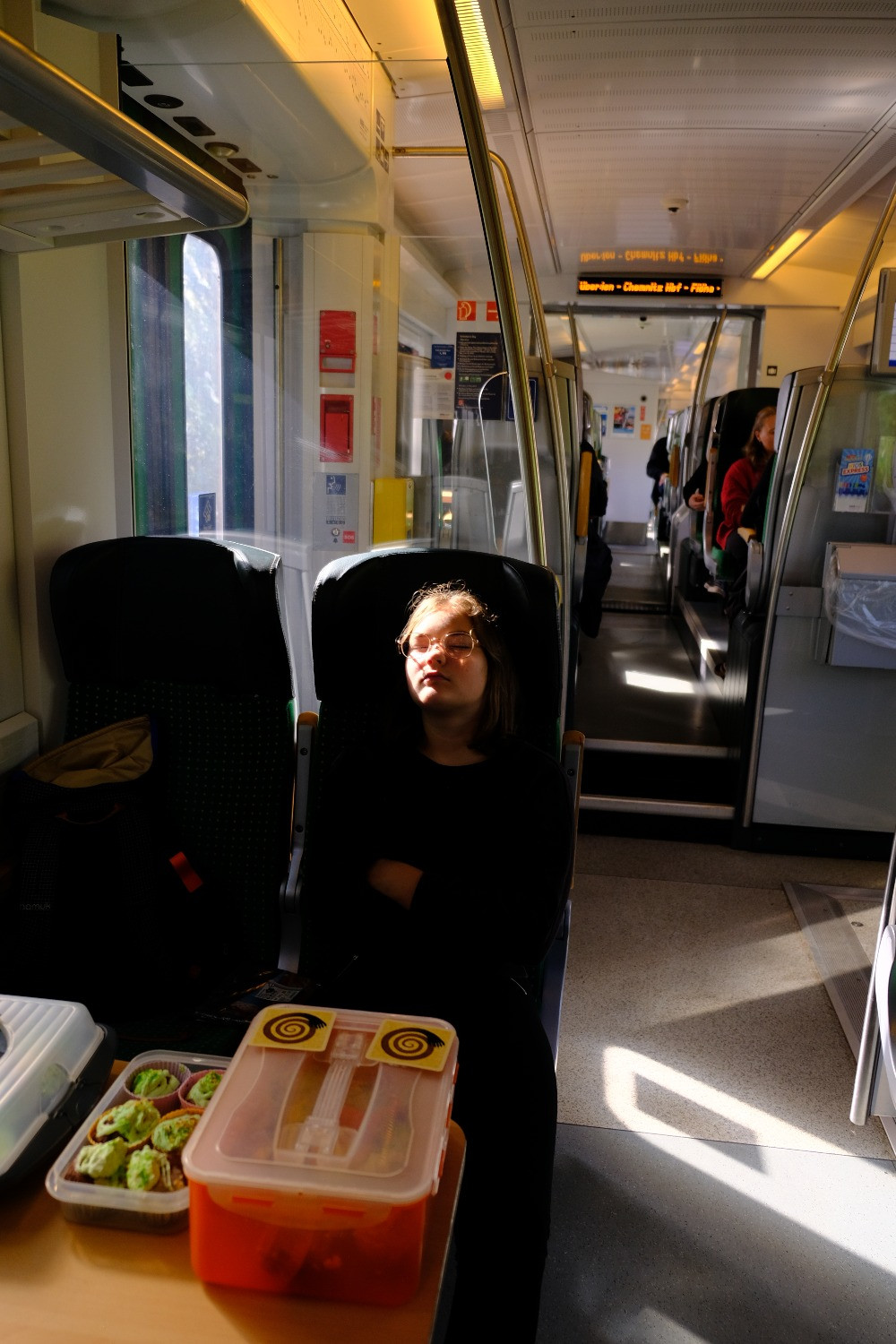 Manche müde Gesichter konnten sich im Zug noch ein wenig ausruhen.