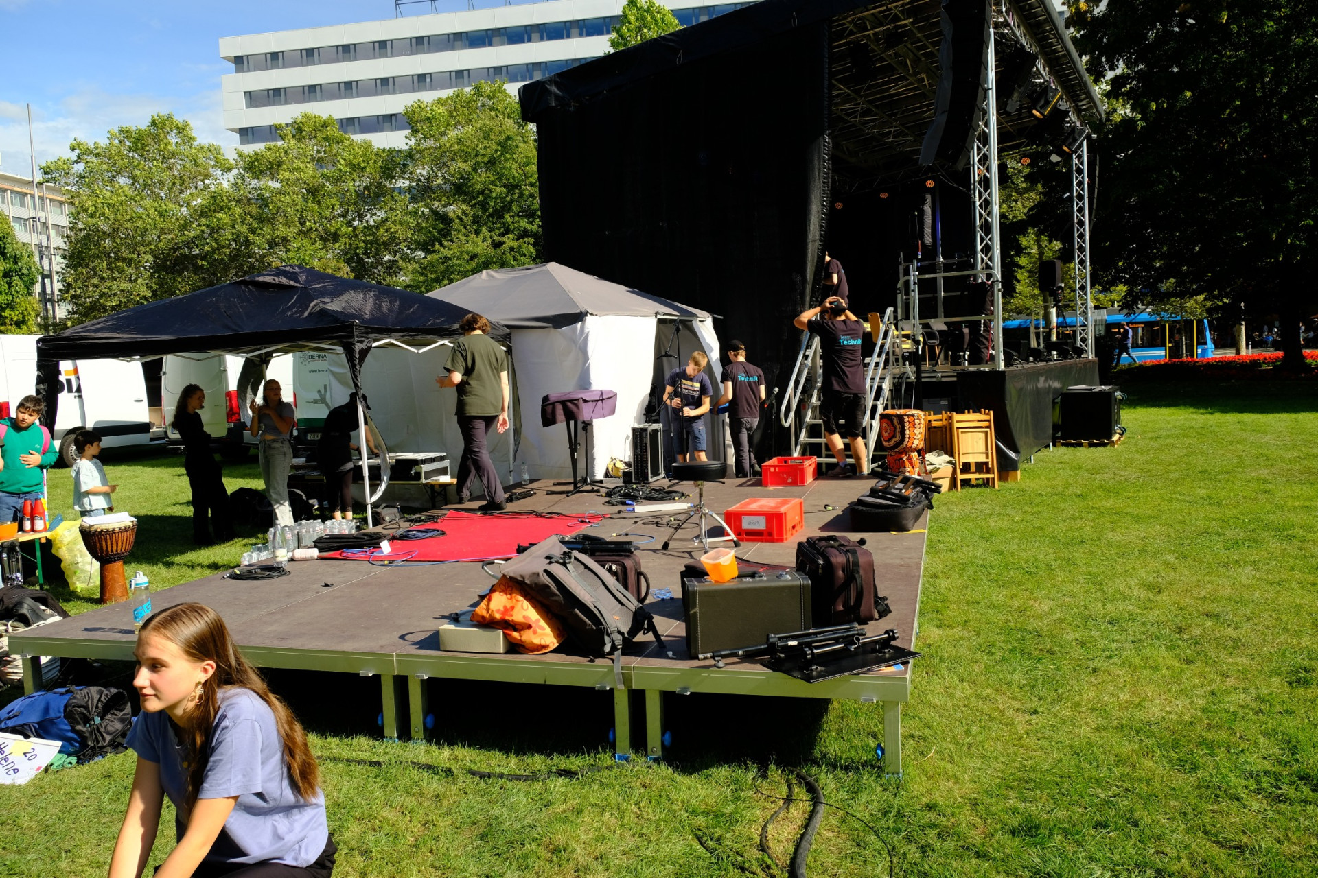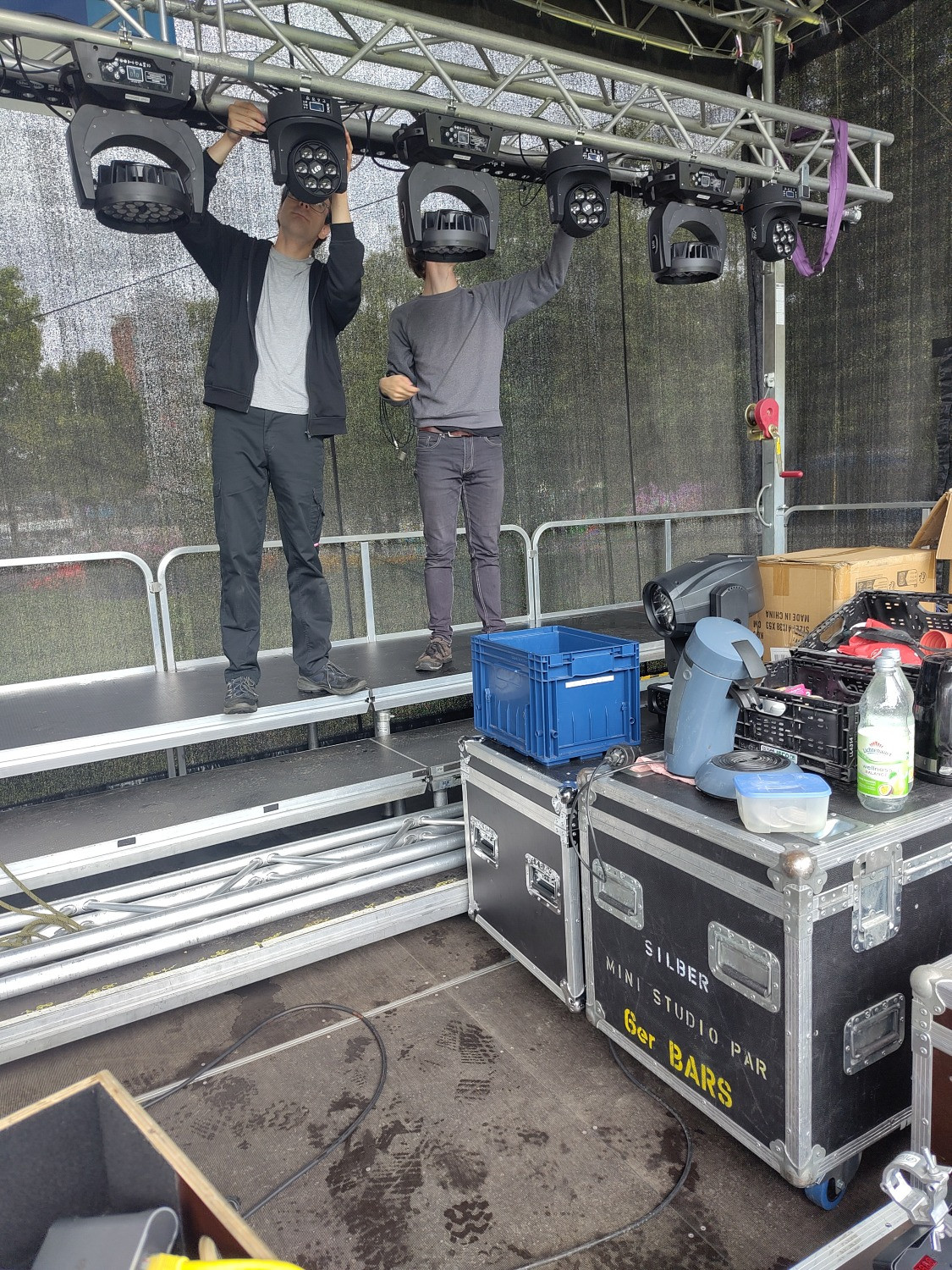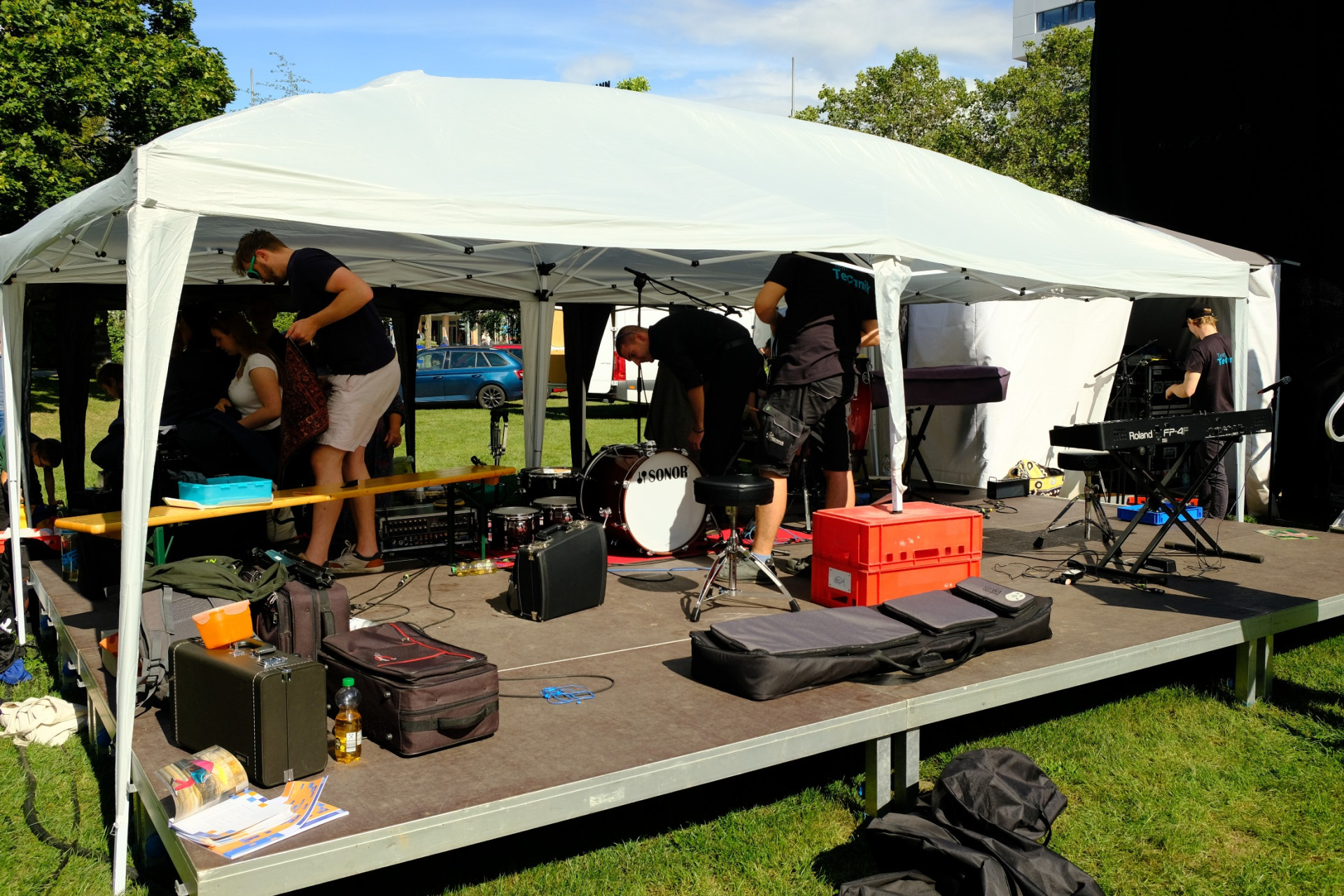 Nach der Vorstellung musste die Band alles wieder zusammenpacken und aufräumen.