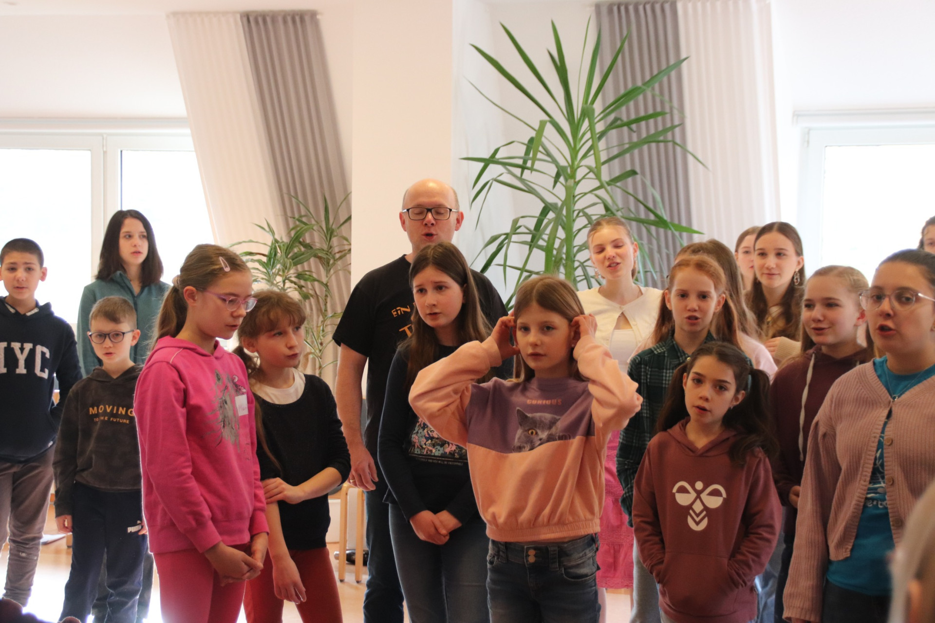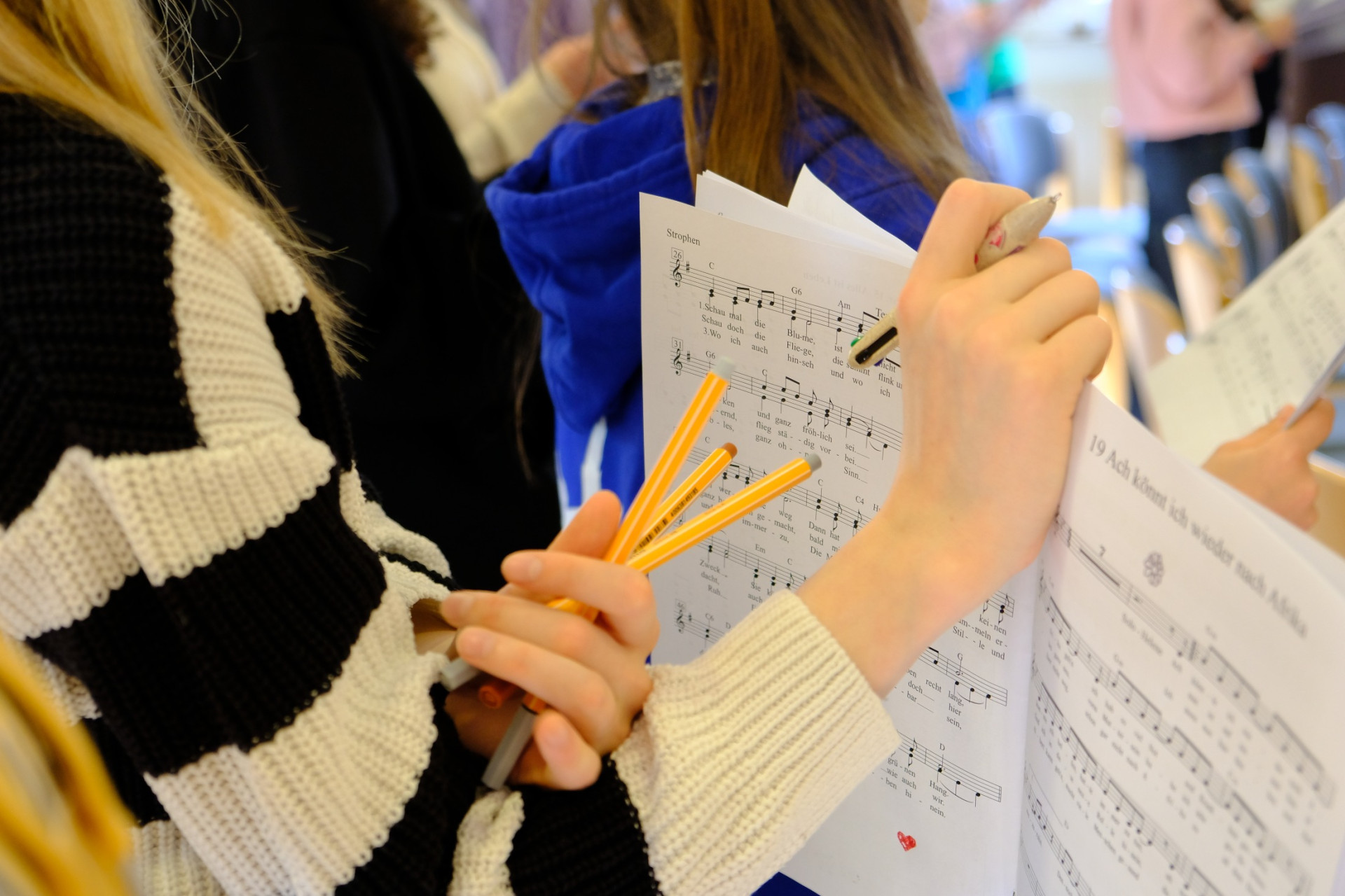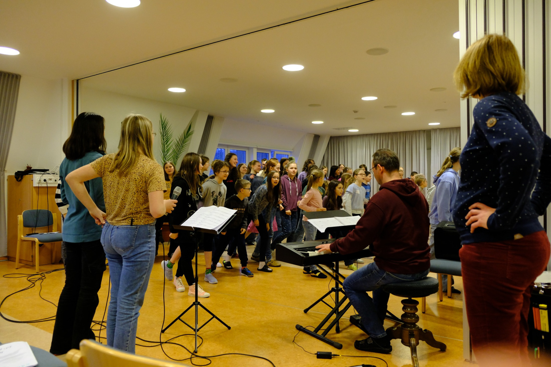 Uli sortiert die Chorreihen nach Schönheit. (Spaß, nach Größe.)