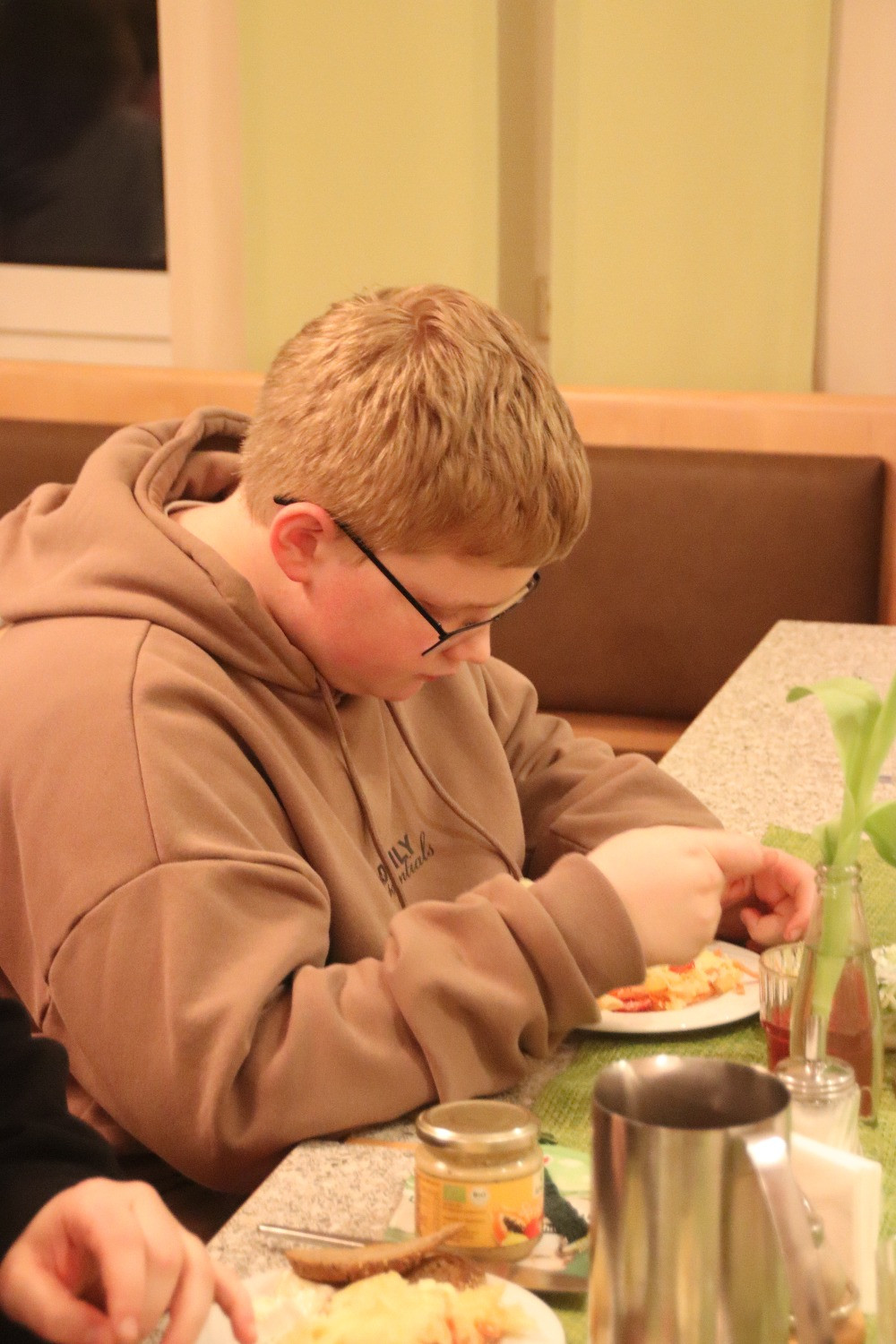 Einige Gesichter sahen heute Morgen ein Stück müder aus (ja, noch müder!) als sonst. Langsam macht sich der Schlafmangel bei dem einen oder anderen vielleicht doch bemerkbar? ... Aufgrunddessen gibt es auch keine Bilder vom Morgenblasen. Das Medienteam hat im Kollektiv verpennt und musste deshalb den Tischdienst übernehmen.